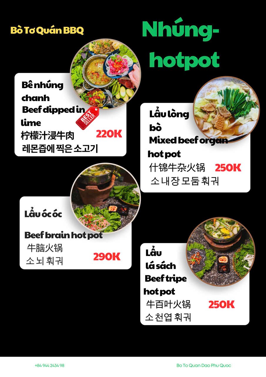 Our menu is not too long, but every dish is authentic and addictive – from grilled, steamed, stir-fried beef to signature hot pot. Visiting the restaurant once will make you remember the sizzling smell of grilled meat forever.